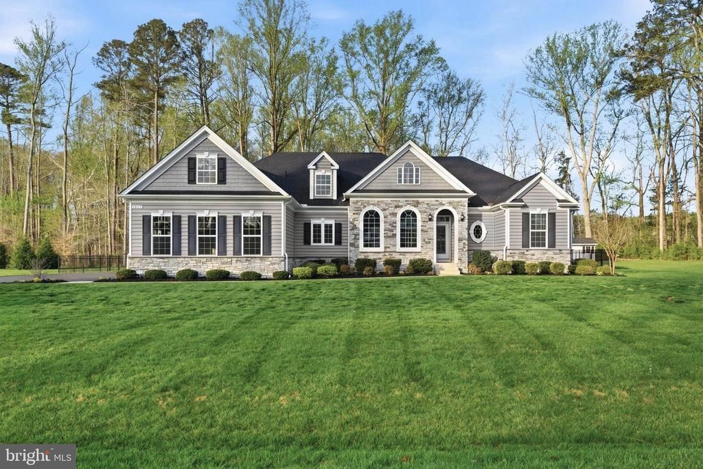 Welcome to this exceptional rambler with a fully finished lower level, ideally located in the highly sought-after Twin Ponds community in Huntingtown. Built in 2021 by Quality Built Homes, this stunning residence showcases over 5,700 finished square feet of thoughtfully designed living space, blending modern luxury with everyday comfort. Perfectly situated on a level 2-acre lot with room for a future swimming pool, the property features a black aluminum fenced rear yard and an oversized 2-car side-load garage. Inside, you’ll find durable LVP flooring throughout both the main and lower levels, complemented by elegant finishes and designer details at every turn. The gourmet kitchen is a true showpiece, appointed with upscale stainless steel appliances including an Advantium wall oven and a 5-burner gas cooktop. The inviting family room features a gas fireplace and striking coffered ceiling, creating a warm yet sophisticated gathering space. Retreat to the luxurious primary suite, complete with a spa-inspired bath showcasing custom ceramic tile, heated floors, a freestanding soaking tub, a spacious walk-in shower, and an expansive walk-in closet with custom built-ins. Both the primary suite and breakfast area offer seamless access to a covered rear porch that flows beautifully to a stamped concrete patio, perfect for indoor-outdoor living and entertaining. The fully finished lower level is designed to impress, offering the ultimate entertaining experience with a custom bar featuring a new ice machine, 60” beer cooler, beverage center, and wine fridge. A spacious family room pre-wired for surround sound and a full bath with a walk-in steam shower complete this incredible space. The fourth bedroom is currently located on the lower level and can easily be converted back to a fully enclosed private bedroom if desired. Additional highlights include Ethernet-connected TVs, eight security cameras, and secured windows and doors. Located within an award-winning school district and offering convenient access to Route 4 for an easy commute to surrounding cities, this home is the perfect blend of luxury, functionality, and location.