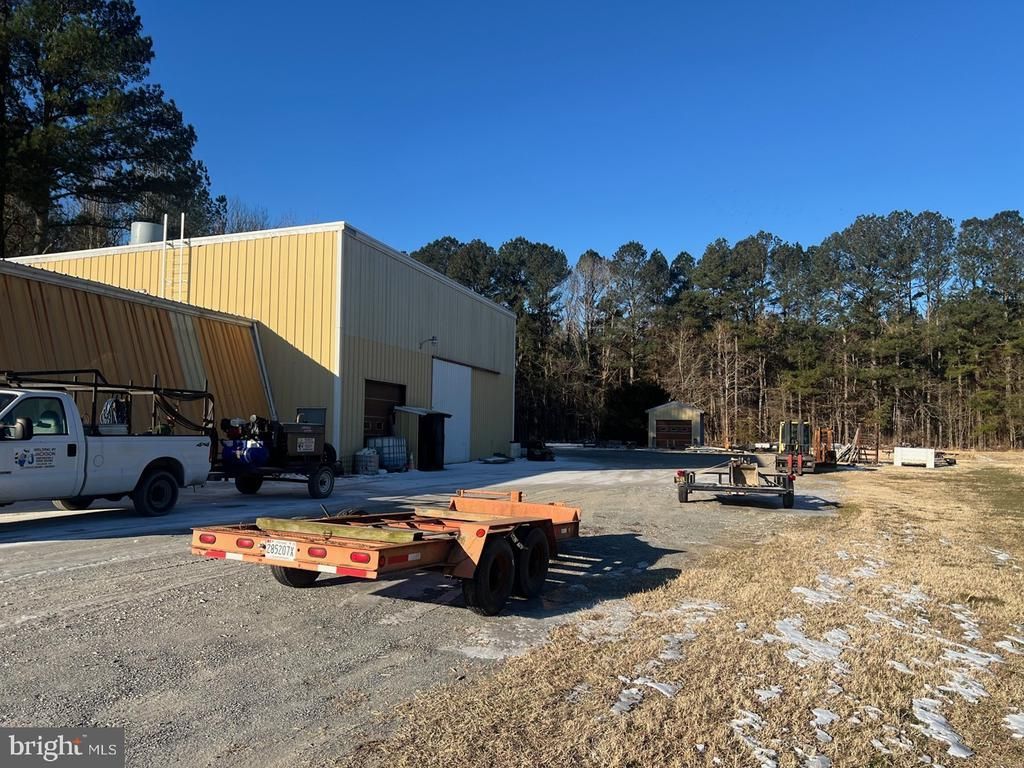 This is a commercial property for sale in Delmar Delaware 5 acres of land with plenty of parking and potential for more. the front building is 40x50 attached to the back building that is 45x60 a total of 4700 sq ft. Back building has a built in Crane and office space with a work shop. The front of property is in county and the back of property is in town limits.