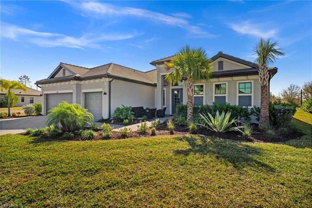 Located in the prestigious guard gated Timber Creek community, this stunning like new seasonal rental offers luxury Florida living at its finest. Built in 2024, this immaculate three bedroom, three full bathroom residence features 2650 square feet under air and sits on a premium oversized homesite. The open concept floor plan showcases soaring ten foot ceilings, eight foot interior doors, tile flooring in the main living areas, and impact resistant windows throughout for comfort, and peace of mind. The gourmet kitchen is beautifully appointed with white shaker style cabinetry, granite countertops, a large center island, pantry, and upgraded stainless steel appliances, making it ideal for both everyday living and entertaining. A split bedroom design provides exceptional privacy, highlighted by a luxurious primary suite with dual vanities, a walk in closet, and a spa like ensuite bathroom featuring a separate shower and soaking tub. Outdoor living is exceptional with a custom heated in ground pool and spa with tranquil views. The expansive screened lanai spans the entire rear of the home and includes an outdoor grill area, perfect for relaxing or entertaining. Additional features include a two car attached garage, paved driveway with guest parking, inside laundry room with utility sink, central heating and cooling, high speed internet, also included in the rental is professional lawn and landscape maintenance and pool service. Residents of Timber Creek enjoy one of Southwest Florida’s most comprehensive resort style amenity centers featuring a clubhouse with restaurant and bar, coffee lounge, resort pool with poolside service, lap pool, splash pad, fitness center, aerobics studio, full court gymnasium, saunas, tennis and pickleball courts, volleyball, bocce, putting green, playground, and more. Ideally located just eleven minutes from Southwest Florida International Airport, this home offers both convenience and luxury in one of Fort Myers’ most sought after communities.