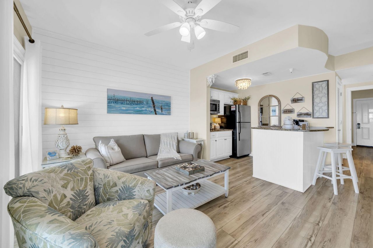 Welcome to Carillon Beach, one of the Emerald Coast's most private and sought-after gated communities. This exceptional 4th-floor lakefront condo offers the rare combination of tranquil lake views and beautiful Gulf views, a privilege enjoyed by only the 4th- and 5th-floor residences. Recently renovated and offered fully turnkey, this elegant 1-bedroom, 1-bath retreat is ideal as a refined personal beach escape or high-demand investment property.Inside, the bright open-concept living and kitchen space is perfectly positioned to capture the peaceful beauty of Lake Carillon, creating a truly scenic coastal setting. A rare and thoughtful design feature -- a door separating the bedroom from the main living area -- adds both privacy and practicality. Stylish furnishings, tasteful décor, and an HVAC system just two years old complete this beautifully updated residence, ready for immediate enjoyment.