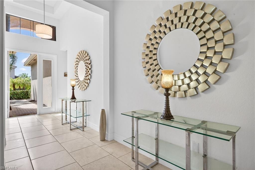 The perfect winter retreat or new place to call home! This desirable Aruba model by G.L. Homes is an open and spacious great room floor plan with 2BR plus den 3BA and a 2-car garage. The heart of this home is the kitchen with its enhanced island, the perfect spot for entertaining with family and friends and showcasing Quartz, a stylish backsplash and G.E. stainless steel appliances. The owner’s suite is generous in size, has 2 walk-in closets and a his and her baths with Quartz vanities and convenient tiled walk-in showers. Guest bedroom is light and bright with its bay window and has a sizeable walk-in closet. The spacious den provides a versatile space that can be tailored to any need, whether it’s a home office, media room, or guest retreat. Laundry room is equipped with cabinets and a handy utility sink. Tray ceilings, 8 ft. doors, stylish light fixtures and ceiling fans throughout the home enhance the aesthetics. Great outdoor space with its screened lanai—an inviting spot to relax with your morning coffee, read a good book, or simply savor the beautiful Florida weather. This home is hurricane-ready with accordion shutters on all windows and lanai for peace of mind. Marina Bay is a sought-after community that is guard-gated and offers its residents a club house with multi-purpose rooms, fitness center, tennis, pickleball, indoor/outdoor basketball courts and a full-time lifestyle director who coordinates lots of fun events and activities for its residents. In addition, a resort-style pool and lap pool with cabanas to relax in the shade and a water play center for the children to enjoy. This community is a great location to the SW Florida International Airport, renowned restaurants, popular shopping (Gulf Coast Town Center) and entertainment destinations. Make your showing today as this is SW Florida Living at its best and the perfect place to call home!