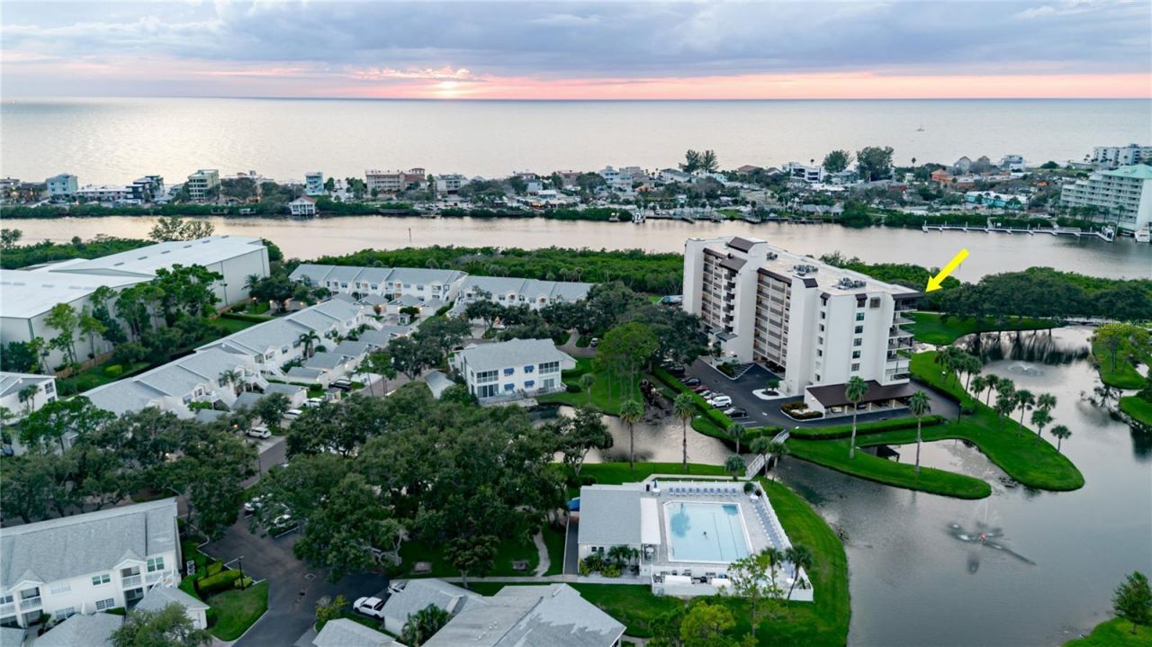 This stunning corner-unit penthouse epitomizes the ultimate Florida lifestyle. Perched on the top floor, it boasts unrivaled panoramic views of the Gulf of Mexico and the Intracoastal Waterway. Inside, the residence exudes sophistication with premium finishes, including Cambria blue quartz countertops, Italian porcelain flooring, and top-tier appliances. The open, light-filled floor plan creates a spacious and inviting atmosphere, perfect for modern living. Both bedrooms have extra storage cabinets, the 2nd bedroom has a beautiful built in Murphy bed and built in desk. A standout feature is the expansive wraparound balcony, ideal for basking in the sun, hosting gatherings, or savoring the breathtaking Gulf views with a book in hand. Nestled within a private 56-acre waterfront community, residents enjoy exclusive amenities, including two pools, two clubhouses, a 45-slip private marina, walking trails, an exercise room, hot tubs, saunas, and 11 top-rated Har-Tru clay tennis courts with a pro shop, on-site tennis pro, and massage therapist. Pickleball enthusiasts will love the vibrant scene, and nature lovers will appreciate the protected bird sanctuary.Located just steps from the sugar-soft sands of Indian Rocks Beach, with its vibrant restaurants and nightlife, this penthouse offers both luxury and convenience. The unit features countless designer upgrades, new impact windows and doors, a secured lobby, under-building parking, and a storage room. Seize your chance to live in paradise at Shipwatch. The community had no flooding or any issues from the storms in 2024.