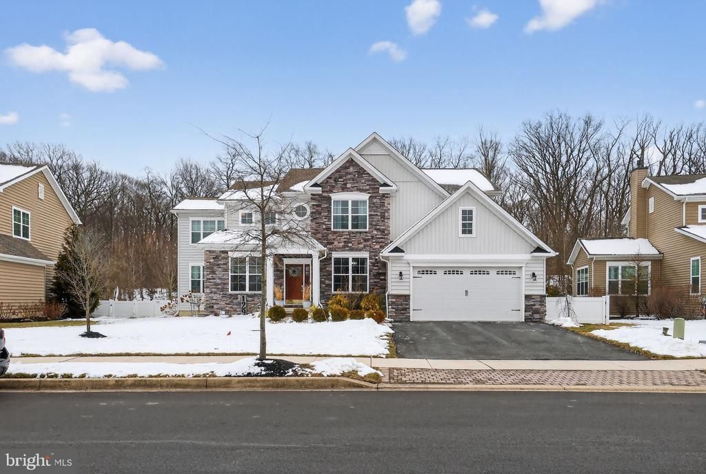Masterful design meets modern luxury in this stunning 6-year-old contemporary stone Colonial offering an impressive 6,215 square feet of finished living space. This expansive 5–6 bedroom, 3½-bath home delivers exceptional scale, thoughtful upgrades, and elegant architectural details throughout. From the moment you arrive, curb appeal shines with manicured landscaping, new hardscaping, decorative columns and barn-style two-car garage doors. Inside, natural light pours through walls of windows, illuminating 9-foot ceilings, designer lighting, and rich hardwood and LVP floors that flow seamlessly across every level of this gorgeous home (No carpet!). The formal living and dining rooms showcase classic crown molding, while the breathtaking gourmet kitchen serves as the heart of the home, perfect for entertaining on any scale. Highlights include a 36-inch gas cooktop with pot filler, professional range hood, electric double wall oven, in-drawer microwave, farmhouse sink, side-by-side touchscreen SMART refrigerator, quartz countertops, upgraded white cabinetry with glass uppers, full-wall designer backsplash, butler’s pantry, oversized center island with seating, breakfast bar, and a separate dining area. An adjoining morning room opens to the deck through sliding glass doors, ideal for morning coffee or sunset views, while the centrally located great room invites gathering and relaxation. A stylish powder room, an oversized pantry off the garage that was converted to a second laundry room, complete the main level. Upstairs, retreat to the spacious owner’s suite, featuring two walk-in closets, including a boutique-style dressing room with custom organizers valued at over $10,000 and charming farmhouse doors. The spa-inspired owner’s bath includes a water closet, Jacuzzi whirlpool tub (with a second hot water heater), and a European-style shower. Three additional generously sized bedrooms, a full hall bath, linen closet, and convenient second-floor laundry (two laundry rooms in the house) complete this level. The fully finished basement significantly expands the living space, offering two additional bedrooms (one ideal for a home office), a full bath, exercise room, bar area, and abundant storage, bringing the home’s total finished space to an exceptional 6,215 square feet. The private fenced-in yard backs to wooded open space, enhancing the home’s tranquil setting. Located in the prestigious Meridian Crossing community, residents enjoy low-maintenance living with an association fee that covers lawn care, snow removal, trash service, and access to a luxury clubhouse with pool, fitness center, picnic areas, and movie room. Conveniently located minutes from Route 1 and I-95. This remarkable home offers space, style, and sophistication rarely found—schedule your private tour today.