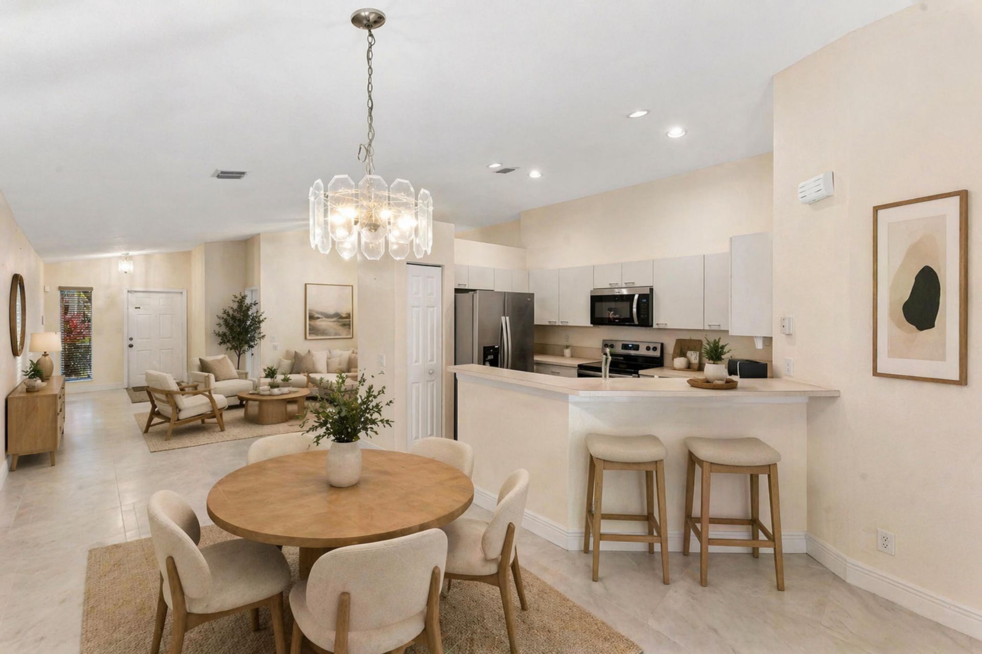 This beautifully upgraded 3-bed, 2-bath, 2-car garage single-story home in the sought-after Savanna community is truly turnkey. Enjoy an open-concept layout with large-format tile in common areas, laminate wood floors in all bedrooms, a bright kitchen with stainless steel appliances, quartz countertops, and a stunning chandelier in the great room. The renovated primary suite features a walk-in closet and new walk-in shower. Impact glass sliding doors open to a freshly coated patio and fully fenced backyard with fruit trees and lush landscaping. Major updates: NEW ROOF, flooring, paint, gutters, appliances, epoxy garage floor-all 2022. Savanna offers resort-style amenities: pools, waterslide, mini golf, sports courts, fitness center & 24-hr guard gate.