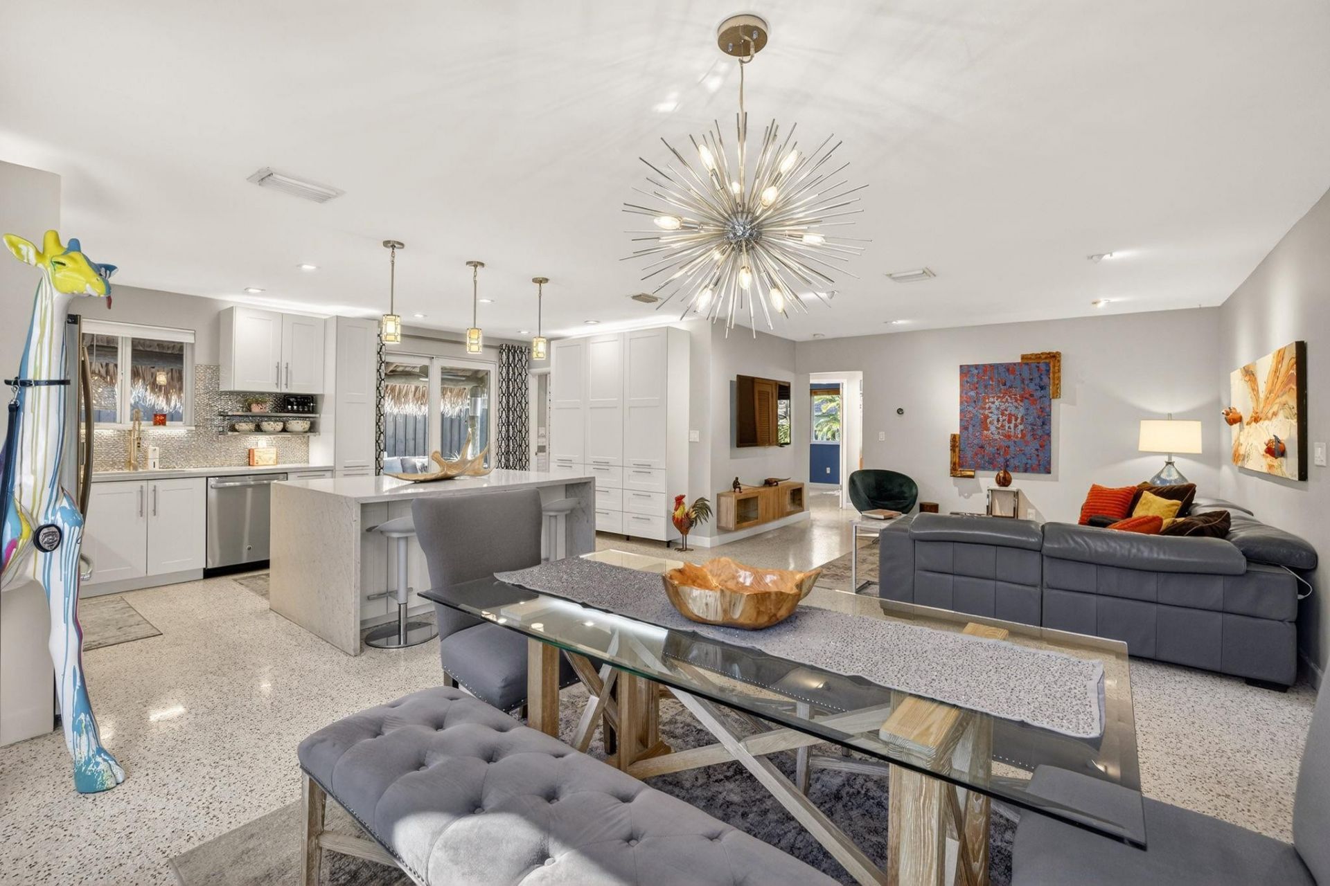 CORAL HEIGHTS modern 3/3 MID-CENTURY POOL HOME on CUL-DE-SAC CORNER LOT, with an INCREDIBLE OUTDOOR ENTERTAINMENT OASIS for true indoor-outdoor living. OPEN-CONCEPT layout with polished terrazzo flrs, designer lighting, and custom SMART STORAGE BUILT-INS. SHOWPIECE KITCHEN opens to living/dining and features oversized island, abundant cabinetry, granite, glass tile backsplash and premium SS appls. LUX HOTEL-STYLE PRIMARY SUITE overlooks a tranquil pond with DIRECT POOL ACCESS, plus spa-like ENSUITE with STEAM SHOWER. Private resort backyard: SALTWATER HEATED POOL (2018), tropical gardens, and MASSIVE 30’ TIKI HUT for outdoor living & entertaining. Govee perimeter/landscape lighting sets the night vibe. NEW W/D. FULLY REMODELED. IMPACT WDS/DRS. TANKLESS H2O. NEW SEWER LINES. 2 WATER METERS.