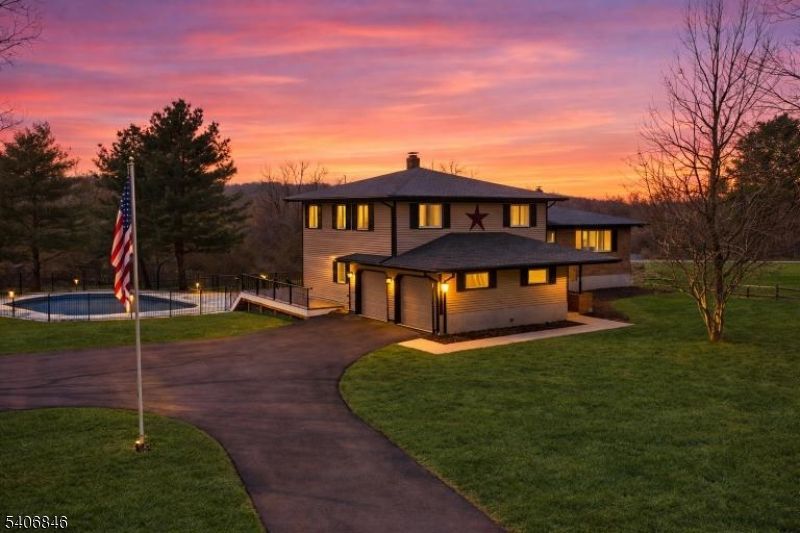 Welcome to 16 Schaaf Road, a STUNNING gut renovated home set on over 3 acres in beautiful Alexandria Township! This move in ready 3 bed, 3 bath home w/ 2 car garage blends modern design with quality craftsmanship. The main level features an open concept layout with seamless flow between the living, dining room, and kitchen. The chef's kitchen is thoughtfully designed with solid wood cabinetry, quartz countertops, tile backsplash, a large center island, & high end SS appliances. A sliding door opens to the upper Trex deck, offering expansive backyard views. Just off the foyer, the spacious family room is filled with natural light and features a brick fireplace, a full bath, and direct access to the lower deck level, creating a flexible everyday living space. The second level hosts the primary suite with an en suite bath & walk in closet, along with two additional well sized bedrooms and a fully reno'd hall bath. Hardwood flooring, recessed lighting, and a bright modern aesthetic continue throughout the home. Outdoor living truly shines with a multi level Trex deck and a fully renovated in ground pool, all surrounded by lush, park like grounds that provide privacy and a serene setting. Extensive upgrades include a brand new roof & gutters, HVAC, hwh, driveway, electrical panel, Trex decking, concrete pool, decking, and fencing, insulated garage doors, & SO many more. Located in one of New Jersey's most scenic areas, this exceptional property is waiting for you!