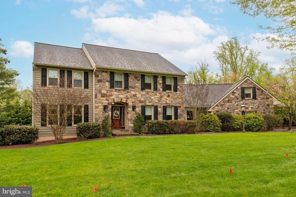 Exceptional Estate-Style Center Hall Colonial in the High Spires community on Over an Acre. Set on a beautifully manicured 1+ acre lot within the highly regarded Council Rock School District, this expansive 5-bedroom, 3 full and 2 half bath center hall colonial delivers the space, finishes, and amenities expected at this level. The home’s exterior immediately impresses with vinyl cedar shake siding, a stone facade, professional landscaping, and an expanded driveway leading to a 3-car garage. Inside, a grand foyer with double coat closets opens to a thoughtfully designed layout. Formal living and dining rooms feature crown molding, chair rail, and glass French doors, offering refined spaces for entertaining. A versatile bonus room with closet—currently used as a home office—adds flexibility. The heart of the home is a truly oversized kitchen, equipped with granite countertops, tile backsplash, double wall ovens, pantry storage, and a large center island with breakfast bar. A dedicated coffee/serving bar and a spacious dining area with sliding doors lead to a two-tier composite deck—ideal for indoor-outdoor living. The adjoining great room is both warm and dramatic, showcasing exposed wood ceiling beams, a stone fireplace with slate hearth and wood-burning insert, a bay window that brings in abundant natural light, and an adjacent wet bar with wine refrigerator. Upstairs, the primary suite offers a private retreat with recessed lighting, crown molding, ceiling fan, and a custom walk-in closet complete with center island, shelving, and built-ins. The en-suite bath features a jetted tub, stall shower, and tile flooring. Three additional bedrooms provide ample space, including a fifth bedroom with its own entrance—perfect for guests, an in-law suite, or extended living—paired with a beautifully finished full bath. A second-floor laundry room adds everyday convenience. The fully finished walkout basement expands the living space significantly, offering a game room, exercise room, lounge, additional sitting area, plus dedicated storage and workspace. Outdoors, the property is designed for entertaining—featuring an in-ground pool, PA Bluestone patio, outdoor bar with lighting and stone finish. Additional highlights include hardwood flooring throughout the first floor, solid wood interior doors, and multiple well-appointed living and entertaining spaces throughout. A rare combination of size, functionality, and upgraded amenities—this is a standout property in today’s market.