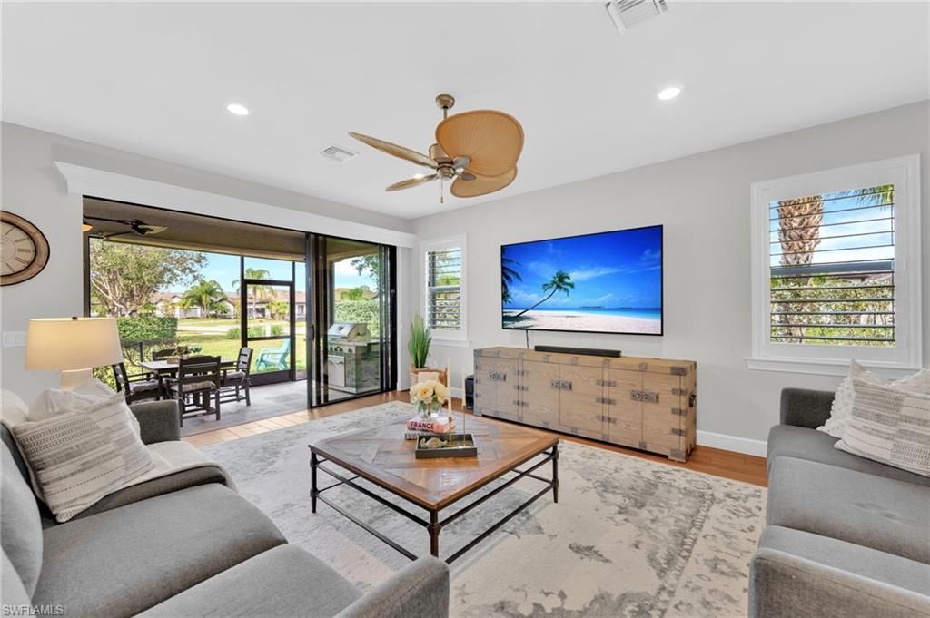 Live the Florida dream in this beautifully upgraded TURNKEY-FURNISHED SUMMERWOOD HOME. Already hurricane proofed providing peace of mind with AWHOLE HOME GENERATOR, 500 GALLON PROPANE TANK, ELECTRIC HURRICANE SHADES off the lanai, and ACCORDIAN HURRICANE SHUTTERS on every window! Relax on your EXTENDED LANAI featuring UPGRADED PORCELAIN TILE overlooking a PARTIAL LAKE VIEW - the perfect spot to unwind after a day at the pool. The backyard is oversized with privacy hedges and plenty of space for future pool expansion. Inside, a CUSTOM BUILT-IN DROP ZONE awaits your pool or beach gear. The open concept features an EXTENDED GREAT ROOM that is bright and spacious with WOOD-PLANK TILE FLOORS, PLANTATION SHUTTERS, and UPGRADED TRIM. The KITCHEN is a dream with QUARTZ COUNTERTOPS, LARGE ISLAND, STAINLESS STEEL APPLIANCES, and a CORNER PANTRY with CUSTOM WOOD SHELVING plus a WHOLE-HOME WATER FILTRATION SYSTEM. The PRIMARY SUITE offers KING-SIZED SPACE, CUSTOM WALK-IN-CLOSET with BUILT-IN ORGANIZATION, while the ENSUITE BATH features DUAL SINKS. Two additional bedrooms include one with a BAY WINDOW and one with DOUBLE FRENCH DOORS, which would be ideal for a DEN, OFFICE, or GUEST ROOM. The LAUNDRY ROOM is fully upgraded with CABINETRY, SINK, and FRONT-LOADING WASHER & DRYER on PEDESTALS. The 2.5-CAR TANDEM GARAGE boasts OVERHEAD STORAGE, a UTILITY SINK, and space for TWO CARS plus room for a GOLF CART or hobby area. Living in The Place at Corkscrew means every day feels like a vacation. Enjoy world-class amenities including a lagoon-style pool with waterfalls, 100-foot waterslide, splash pad, state-of-the-art fitness center, café, and a full-service restaurant and bar offering both indoor and outdoor seating. The community also features tennis, pickleball, bocce, basketball, and sand volleyball courts, plus a playground, dog park, and plenty of green space for outdoor enjoyment. For golf lovers, the adjacent Old Corkscrew Golf Club is undergoing a major transformation by acclaimed golf course architect Kyle Phillips. The completed redesign will showcase a 7,200-yard, par-71 course and new clubhouse, backed by a $40 million investment to position it among the region’s premier private golf destinations. Located just 1 mile from a brand-new Publix Plaza, 10 minutes from shopping and dining at Miromar Outlets and Gulf Coast Town Center, 15 minutes from RSW Airport, and only 30–40 minutes to the beautiful Gulf Coast beaches, this home offers the perfect blend of resort-style living and everyday convenience. Experience the best of Southwest Florida living at The Place at Corkscrew — where luxury, comfort, and convenience come together beautifully. Resort-style living with elegance and everyday comfort. Just bring your suitcase and start living the Southwest Florida lifestyle.
