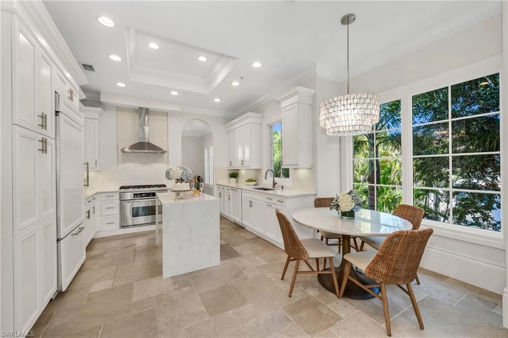 This beautifully reimagined residence offers a refined, move-in ready lifestyle defined by thoughtful design, elevated finishes, and an abundance of natural light. Built in 2008 and encompassing over 3,000 square feet under air, the condominium lives like a private home, with a spacious layout, two-car garage, and an expansive wraparound screened lanai overlooking tranquil water views. From the moment you enter, the interiors reflect a cohesive, designer-curated aesthetic, thoughtfully coordinated with Chicago-based designer Andy Clymore. High ceilings, generous moldings, and freshly repainted interiors create a light, sophisticated backdrop, complemented by custom designer lighting and LED illumination throughout. The main living areas are both elegant and inviting. The living room, enhanced by a custom bar and refined furnishings, flows seamlessly into a spacious dining area ideal for entertaining. The family room and dinette open to the wraparound lanai through sliding glass doors, creating a seamless indoor-outdoor connection and capturing beautiful eastern light. The kitchen has been tastefully updated with quartz surfaces, a custom backsplash, and a striking waterfall island, complemented by abundant custom cabinetry and a clean, modern aesthetic—designed for both everyday living and effortless hosting. The primary suite offers a serene retreat, complete with generous proportions, dual closets, and a beautifully reimagined bath featuring new cabinetry, fixtures, a soaking tub, and a refined spa-like shower. Two additional guest suites provide comfort and privacy, each with well-appointed baths and updated finishes, while a large office with custom cabinetry offers flexibility for work or relaxation. Enhancements throughout include a new white oak stair baluster and handrail system, one updated air conditioning system, impact windows and doors, elevator, and a tankless water heater. A new roof in 2025 further adds to the home’s appeal and peace of mind. Outdoor living is exceptional, with a spacious wraparound screened lanai designed for both relaxation and entertaining. Newly refreshed furnishings create a comfortable and inviting setting to enjoy peaceful water views and gentle morning light. Grey Oaks is one of Naples’ most prestigious private golf communities, offering three championship golf courses, two elegant clubhouses, and multiple dining venues. Residents enjoy a 30,000-square-foot Wellness Center with spa services, tennis, pickleball, bocce, and a vibrant, year-round social calendar. Centrally located, Grey Oaks provides effortless access to downtown Naples, the Gulf’s white-sand beaches, and exceptional shopping and dining—making it one of the most desirable addresses for those seeking both luxury living and an active, connected lifestyle. Welcome home!