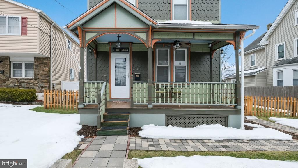 Beautifully restored Victorian in the heart of Lansdale Borough! This 3 bedroom, 2-1/2 bath home blends timeless architectural charm with thoughtful modern updates. The striking exterior features meticulously restored shingle-style siding and a welcoming front porch. Inside, you'll find a bright open floor plan with hardwood floors, detailed trim work, and abundant natural light throughout the living and dining areas. The updated kitchen offers stainless steel appliances, a hammered copper farmhouse sink, newer cabinetry, breakfast bar seating, corner pantry, dedicated laundry area, and a convenient first floor powder room. The second level includes two well-sized bedrooms connected by an updated Jack & Jill bath with claw-foot tub and stall shower, plus a flexible bonus space and an additional full bath. The third floor bedroom provides a private retreat with bonus alcove ideal for an office, sitting area, or walk-in closet. Enjoy a fully fenced backyard with a brick paver patio, newer storage shed, and a rare 3+ car rear parking accessible from the alley. Located within walking distance to shops, restaurants, parks, and the train station for easy city commuting. A perfect combination of character, location, and functionality!