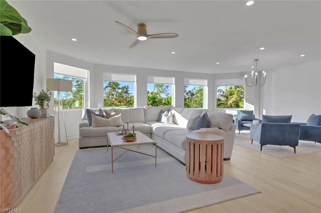 This beautifully renovated third-floor corner unit in Ventanas at Tiburón showcases elegant designer finishes, abundant natural light, and a spacious open floor plan perfect for modern living. A generous wrap-around lanai offers multiple seating areas—ideal for relaxing, entertaining, and enjoying tranquil natural views that seamlessly blend indoor and outdoor spaces. Inside, you’ll find three luxurious en-suite bedrooms, each with a private bath, along with a stylish powder room for guests. The expansive great room flows effortlessly into a high-end gourmet kitchen, creating a warm and inviting atmosphere for gatherings and everyday living. Residents enjoy the security of a guard-gated entrance and the convenience of under-building parking. Ventanas offers two resort-style pools, a spa, and a grilling area for your everyday enjoyment. You’ll also have access to the nearby Ritz-Carlton Resort and the Tiburón Golf Club, featuring 36 holes of championship golf, clay court tennis, and exceptional dining options. A transferable Signature Membership is available with this residence.