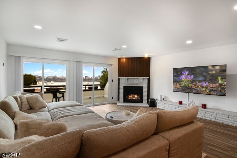 Enjoy this newly renovated Mediterranean duplex townhouse at the CLIFF HOUSE . Ideally situated above Edgewater, offering two levels of refined comfort and style. The main level features an open-concept layout with a spacious living area, a wood-burning fireplace, and sliding glass doors that lead to a large private terrace with partial New York City views. The kitchen is beautifully appointed with a center countertop, stainless steel appliances, and custom wood cabinetry perfect for both everyday living and entertaining.The lower level hosts a luxurious primary suite complete with an enclosed patio and spa-inspired bathroom, featuring a soaking tub and separate shower. A conveniently located laundry area adds to the home's functionality.Additional highlights include new flooring throughout, custom light fixtures, ample storage, and an attached two-car garage. Residents enjoy premium amenities including a pool with river and city views, a fitness center, and 24-hour concierge service. This pet-friendly, gated community offers easy access to public transportation and is within walking distance to restaurants, shops, and more.