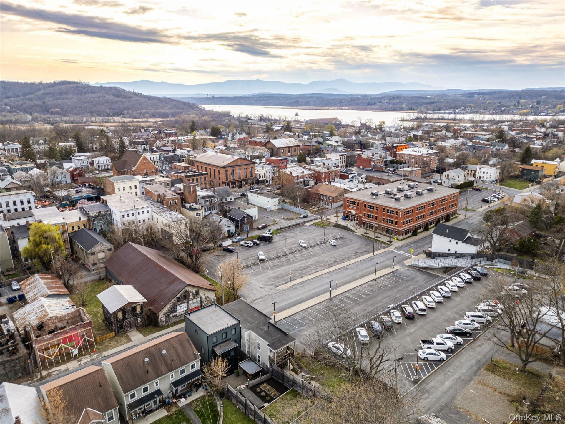 Welcome to Madam Mae House, a four-story contemporary townhome in the heart of walkable downtown Hudson, rebuilt from the ground up in 2019 by Conklin Architecture and Furnari Construction as the city's first modern four-story residence. Finished with the precision and material quality of a high-end custom build, every mechanical system is new, with a fully integrated central heat and air system that serves all four floors, for year-round energy efficiency and comfort. Two-story front windows flood the interiors with natural light, and out back, a three-tiered backyard with gardens, a grassy lawn, and private off-street parking is uncommonly generous for a downtown address.A double-height living room rises to twenty feet, with windows framed by custom full-length drapes drawing natural light deep into the space, and a wood paneling feature wall surrounding a custom concrete gas fireplace. The chef's kitchen is built around an oversized island in black leathered granite, with a deep farmhouse sink and stainless Samsung appliances. Off the kitchen, a herringbone brick mudroom with a half bath leads to the backyard with off street parking. The second floor holds two bedrooms sharing a Jack and Jill bath, with the mezzanine opening to the living room below. The entire third floor is given over to the primary suite, a private retreat with the feel of a self-contained apartment: a generous bedroom, parlor-style sitting area, walk-in closet, and a spa bath with soaking tub, glass-enclosed shower, and water closet. Below the main floor, the finished basement nods to the home's Diamond District past: built in 1920, and home to Mae Gordon, one of the last madams to operate in Hudson's once-notorious red light district, this cozy level is finished with wallpaper and paneling for an underground parlor feel, and functions as a fourth bedroom or family room with egress to Columbia Street.Outside, the three-tiered backyard is as considered as the interior. Fire up the grill on the garden level, spread out on the grassy lawn on a summer afternoon, and end the evening at the upper tier with a drink in hand and unobstructed Catskill mountain views overhead. On clear nights the sunsets are worth staying home for. Alley access provides off-street parking with room to add a garage, guest cottage, or income-generating accessory dwelling unit.Just steps from Warren Street's galleries, boutiques, and restaurants, you can browse the antique markets, pick up coffee and a pastry at Mel the Bakery, or settle in for dinner at F