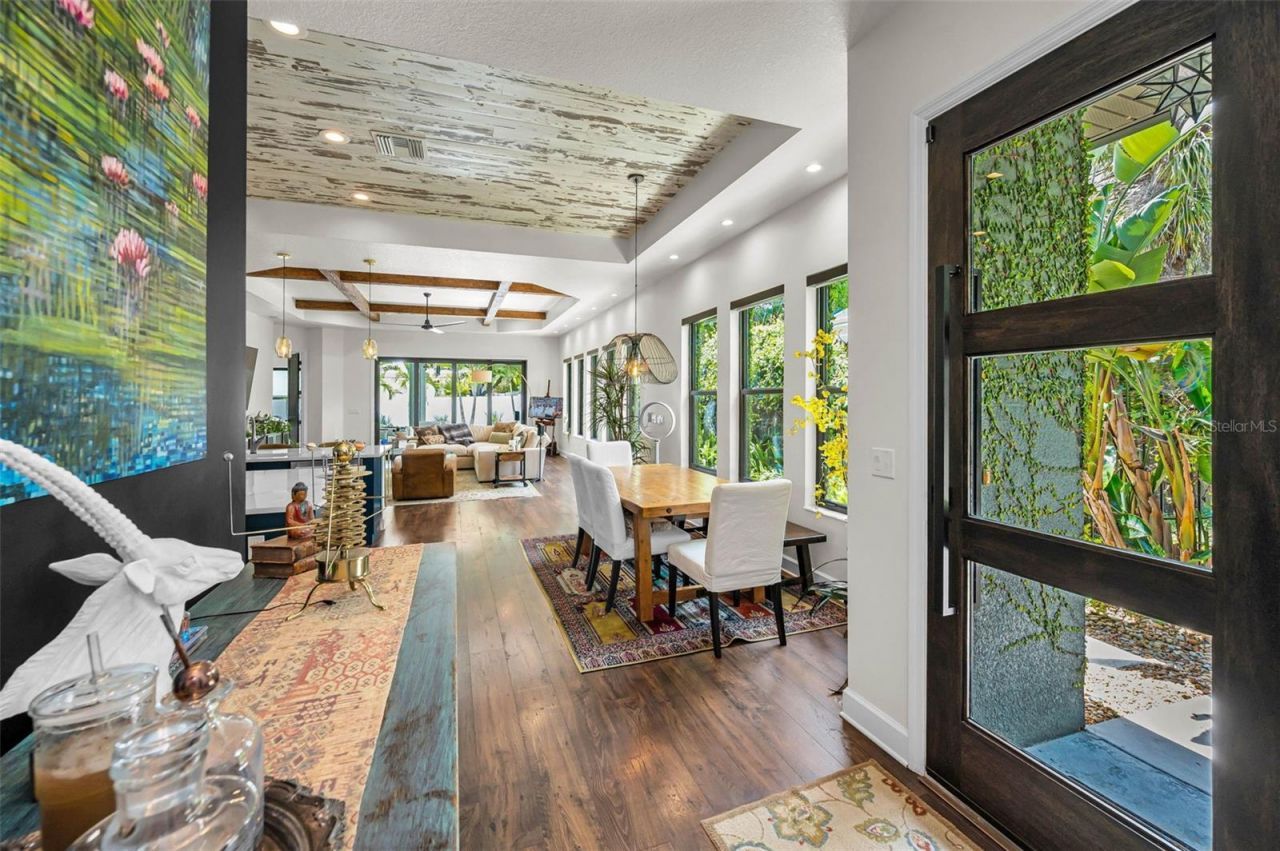 Welcome to this extraordinary modern, coastal-inspired home. Perfectly positioned on one of Safety Harbor's most coveted streets. Custom built in 2018 as a true forever home, this one-of-a-kind property blends thoughtful design, superior construction, and refined luxury-offering a lifestyle that is both elevated and effortless.Ideally located just moments from the charm of downtown Safety Harbor, yet tucked away to provide peace, privacy, and freedom from event traffic, this home delivers the rare balance of walkability and tranquility.From the moment you enter, the level of craftsmanship is undeniable. Soaring 11- 13-foot ceilings, rare 9-foot solid core doors throughout, beautiful custom wood cabinetry, and designer-curated finishes create a cohesive, high-end aesthetic. Natural light floods the interior of the home through custom bronze hurricane-rated windows, including a dramatic wall of glass that seamlessly connects indoor and outdoor living.The kitchen is both beautifully designed and highly functional featuring an induction cook top with gas line already in place for those that prefer a gas range along with a convenient pot filler for effortless cooking and a wine refrigerator for entertaining.The thoughtfully designed floor plan features two private suites on the main level, including an expansive primary retreat and a secondary ensuite bedroom-ideal for guests or multigenerational living. Upstairs, additional living space includes a stunning office or bedroom with panoramic 'world view windows, along with a private guest suite and bath.Built for both comfort and efficiency, the home is equipped with a state-of-the-art high-efficiency HVAC system (2025), spray foam attic insulation, a whole-house generator on city gas, tankless gas water heater, Emporia energy management system, and full home water filtration including carbon system and softener.The oversized three-car garage is a standout feature, designed to accommodate not only vehicles but also an active coastal lifestyle, with space for bikes, paddleboards, golf cart and more.Step outside to your private resort-style retreat. The custom saltwater pool with sun shelf and electric heater is complemented by an artistic paver deck designed to stay cool underfoot. The covered patio is thoughtfully equipped with retractable shades and misting-ready fans, creating a comfortable outdoor living space ideal for year-round enjoyment. The professionally designed landscape, enhanced by ambient lighting, delivers both beauty and low-maintenance living.Additional features include hurricane-rated windows (no shutters required), a comprehensive camera security system, insulated garage doors, sound insulation between bedrooms, custom blinds, solid interior doors, and countless thoughtful upgrades throughout-even down to strategically placed outlets for modern convenience. Located outside of a flood zone and just a short stroll across a pedestrian bridge to Philippe Park, this home offers a lifestyle that is truly unmatched.This is not a spec build-it is a meticulously designed, deeply intentional custom home where every detail has been considered.