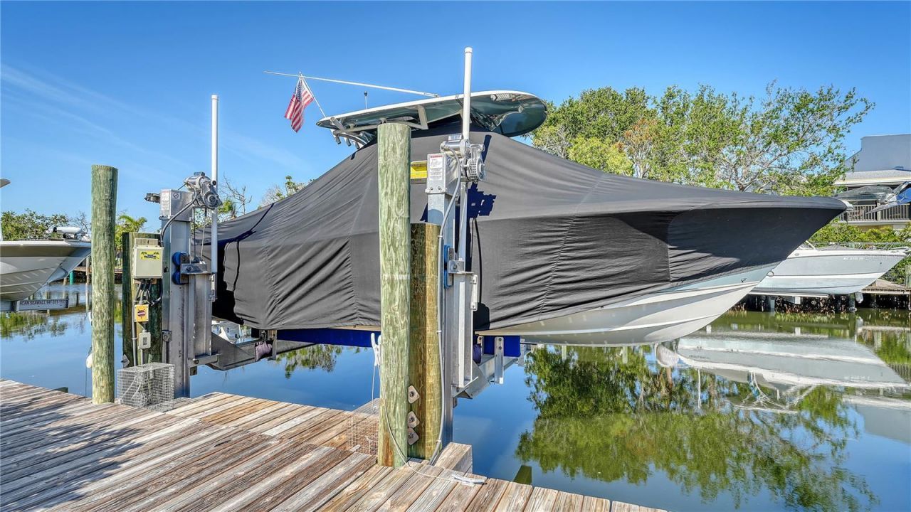 Welcome to this exceptional waterfront end-unit condo offering the ultimate Florida boating lifestyle. This beautiful residence includes your own 40' boat slip, a 10,000-lb boat lift (Nov 2022), and an additional 30-amp power supply. The extended dock provides extra seating and a dedicated entertaining area-perfect for relaxing or hosting dockside gatherings.This 2,046 sq. ft., 3-bedroom, 2-bath home features real hardwood floors and no neighbors above or below, ensuring privacy and tranquility. Enjoy west-facing sunset views overlooking a deep, sailboat-accessible saltwater canal, Cove Sound Moorings Marina, the Intracoastal Waterway, and beyond.The open-concept floor plan is filled with natural light, highlighted by four skylights and a dramatic great room with soaring 13' ceilings. The chef's kitchen boasts expansive granite countertops, a newly added marble stone backsplash and kitchen walls, and ample workspace-ideal for both everyday living and entertaining.The spacious primary suite features new floor tile, a travertine bath and shower, dual sinks, a walk-in shower, and a generous walk-in closet. Additional upgrades include brand-new PGT impact windows and doors, a new HVAC system with all-new ductwork (March 2025), and a hurricane-glassed lanai with screens, expanding the indoor-outdoor living space.Step outside to the newly added paver patio, perfect for BBQs, sunset watching, and enjoying the waterfront breeze. The home offers abundant storage, including closets, attic space, and an additional air-conditioned storage/workshop with attic on the ground floor. Two covered parking spaces are included.Recent community and building improvements include new elevators, a new roof, resurfaced pool and pool decks (2023), and fresh exterior paint (2025). Smuggler's Landing residents enjoy two heated pools, a hot tub, clubhouse, fitness room, and tennis/pickleball courts.Located on a private road just off Anna Maria Island, directly across from the historic fishing village of Cortez, this upscale waterfront community offers direct access to the Intracoastal Waterway and the Gulf of Mexico.Come see this incredible home-you'll fall in love with the area, the lifestyle, and your new waterfront retreat.