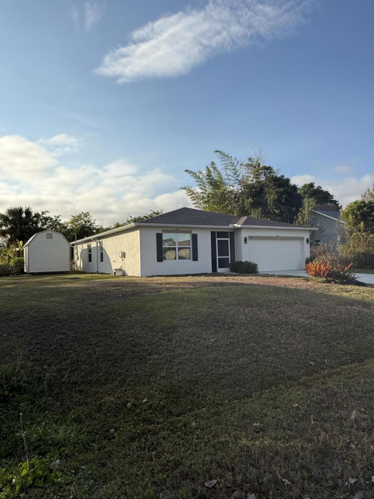 Experience the ultimate retreat in a paradise setting, conveniently located just a short drive from the stunning Indian River Lagoon. Enjoy exceptional waterfront dining experiences & benefit from easy access to Route 1 and I-95. This magnificent haven features 4 bdr, 2fb, & a 2 car garage & a new metal she-shed (12 ft x 20 ft plus a loft) which can be used as an office, game room, bar, sewing workshop or storage space. Take advantage of the freedom from HOA restrictions & ample space for your boat. Granite countertops, beautifully complemented by tile flooring & carpet in the bedrooms. Stainless, energy-efficient kitchen appliances. Arrange a viewing today and start living your dream!