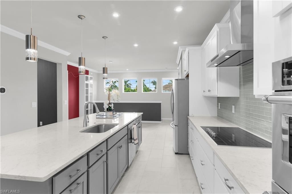Live the Florida dream in this immaculate 2-bedroom 2-bathroom coach home located in the heart of Naples’ vibrant Bayshore Arts District, where culture, entertainment and nature meet. Nestled within Arboretum, a highly sought-after gated community just minutes from Naples Botanical Gardens, the National Pickleball Center, Celebration Park, and vibrant downtown Naples, this 1,480 sq ft second-floor residence offers a spacious open-concept layout. Enjoy serene west-facing lake views from the screened lanai, while impact-rated windows and sliding glass doors provide peace of mind and enhanced energy efficiency. The split floor plan is designed for privacy and versatility with a spacious guest suite that offers a private balcony for guests to enjoy outdoor space. The main living areas are enhanced with marble-style white and gray ceramic tiles ,modern luxury vinyl flooring runs through the bedrooms and closets, all complemented by crown moldings, recessed lighting and a sophisticated wall color palette adding a refined touch to the space. The modern kitchen is a true centerpiece, offering an oversized center island, quartz countertops, stainless steel appliances and sleek cabinetry ideal for both cooking and entertaining. Direct access to the home is through the side entry covered porch or the attached 1-car garage that provides additional storage space. Residents of Arboretum enjoy resort-style amenities including a clubhouse with a heated pool and spa, a fire pit, grilling stations, a well equipped fitness center, a dog park perfect for enjoying the best of Florida outdoor living and staying active year-round.