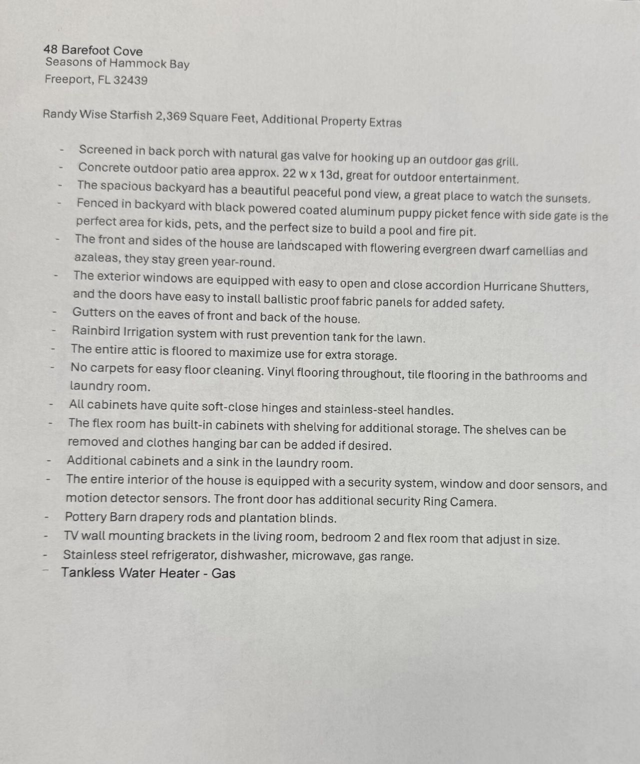 This single family home located at 48 Barefoot Cove, Freeport, FL 32439 is currently listed for sale with an asking price of $535,000. This property was built in 2018 and has 3 bedrooms and 2 full and 1 partial baths with 2369 sq. ft. Barefoot Cove is located in the HAMMOCK BAY subdivision. Search HAMMOCK BAY real estate on www.realtymark.net today.
