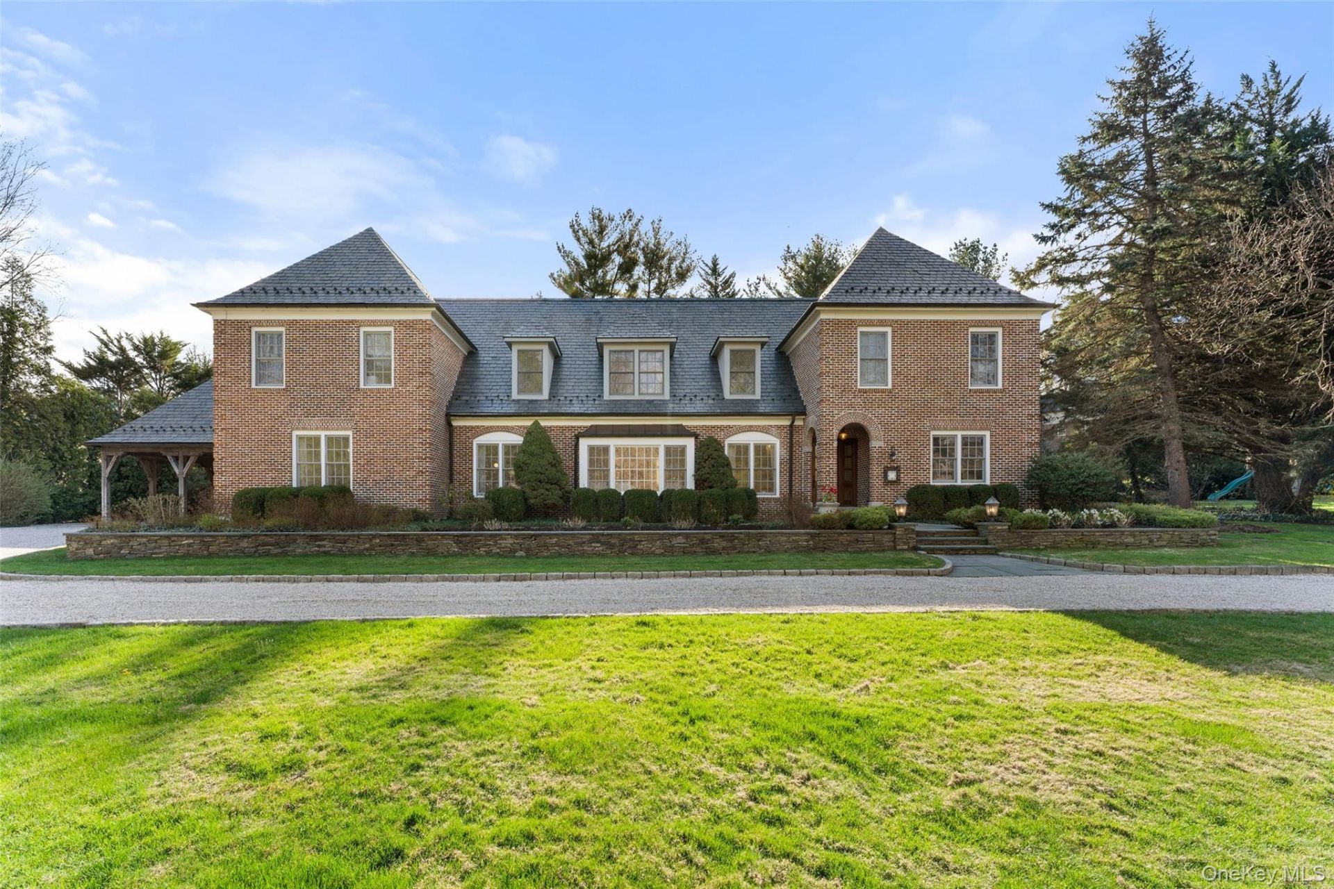 Sun-drenched and grand Colonial showplace on an expansive park-like property in the Grange estate section of Greenacres, this stunning home was painstakingly restored and redesigned in 2006 with no expense spared. The stately home impresses upon arrival, with an exterior fashioned from prized hand-cut Alabama brick. Step inside and discover a foyer wrapped in custom windows, moldings, and millwork, such as traditional solid wood panel doors with inset installation and premium architectural bullet-shaped olive knuckle hinges in the office and dining room, and white oak wide plank hardwood floors throughout. The spacious and elegant formal living room and dining room are perfect for hosting large gatherings, and the family room with stone fireplace and refinished study with custom mahogany millwork, desk, and bookshelves, create wonderful spaces for cozy and quiet enjoyment. The chef's kitchen with highest-end appliances was crafted with brand new custom cabinetry and countertops, and includes two pantries and a brand new butler's pantry with wine refrigerator. The stunning powder room is outfitted with Roman clay walls and Waterworks fixtures, and the incredible first floor bedroom suite, originally the primary suite, is the ultimate guest quarters. Ascend the handsome wood staircase to arrive at a luxurious primary suite with an ultra-chic custom feature wall with built-in designer lighting, white oak, and a Roman clay paint finish. There is a built-in desk in the office off the primary bedroom with a windowed office nook, custom walk-in closet space, and a huge spa-like bathroom with Waterworks fixtures, heated floors, double sinks, and a deep soaking tub. The family bedrooms are all bright and beautifully finished, and a fabulous open rec room with soaring vaulted ceilings was recently redone with custom bookshelves, built-ins, lighting, and woodwork. Convenient laundry on this second floor boasts custom built-ins and a sink. Outside, relax, play, and entertain on the blue slate patio overlooking the lushly landscaped and designer-lit .85 acre grounds. Additional features include a 100-year blue slate roof, copper gutters, copper roof ice breakers, Tesla charger, generator inlet box and carport for 4 cars. Ideally located across the street from George Field Park and near Greenacres Elementary School, the Metro-North station, restaurants, and shopping, this exceptional home offers the ultimate Scarsdale lifestyle.