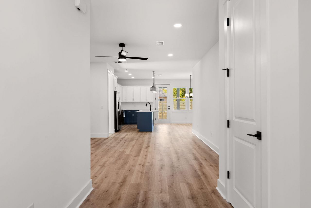 Just completed in 2025, 515 Pine Tree Drive offers 4 bedrooms, 2 bathrooms, and 1,750 sq ft of coastal style, perfect for full-time living, a beach getaway, or a short-term rental. Inside, enjoy 8' doors, wide-plank flooring, and recessed lighting throughout an open layout. The kitchen impresses with a quartz island, two-tone navy and white cabinetry, stainless appliances, and pendant lighting. Both bathrooms feature quartz countertops and a spa-style frameless glass shower. Outside, a covered patio and privacy-fenced backyard round out this move-in-ready, zero-maintenance new build minutes from everything Panama City Beach has to offer.