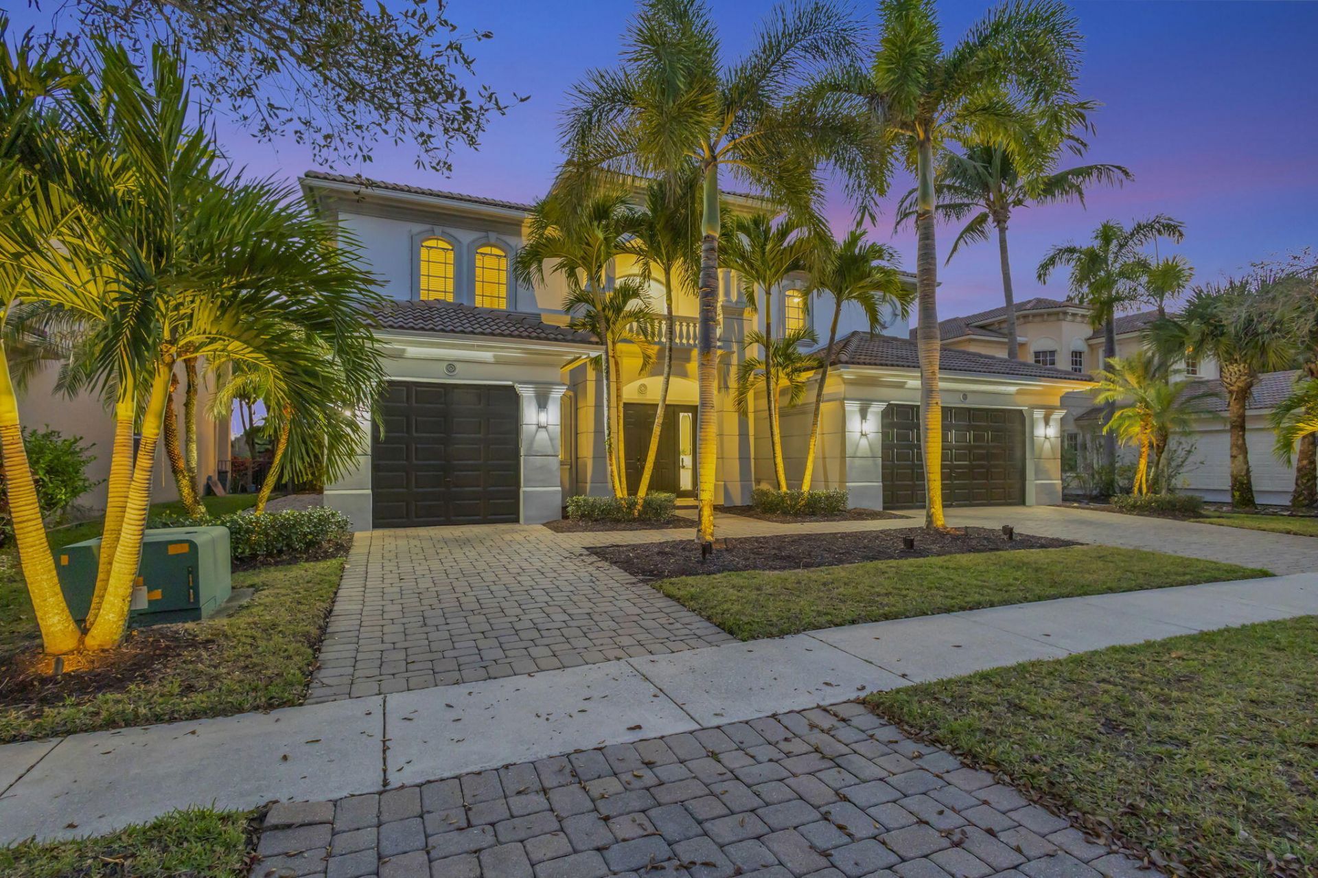 Newly renovated luxury primary bathroom and a brand-new A/C system set the tone for comfort andsophistication in this stunning waterfront estate, located in the highly sought-after gated community of Wellington View. Step inside through the grand two-story foyer, where a sweeping curved staircase and dazzling chandelier create an immediate sense of elegance and timeless design. Thoughtfully crafted for both refined living and effortless entertaining, this residence blends luxury, space, and breathtaking natural surroundings. The home features a formal living room with an electric fireplace and dramatic volume coffered ceilings, creating the perfect setting for gatherings or quiet relaxation. The designer gourmet kitchen is a chef's dream, equipped with high-end appliances, elegant finished