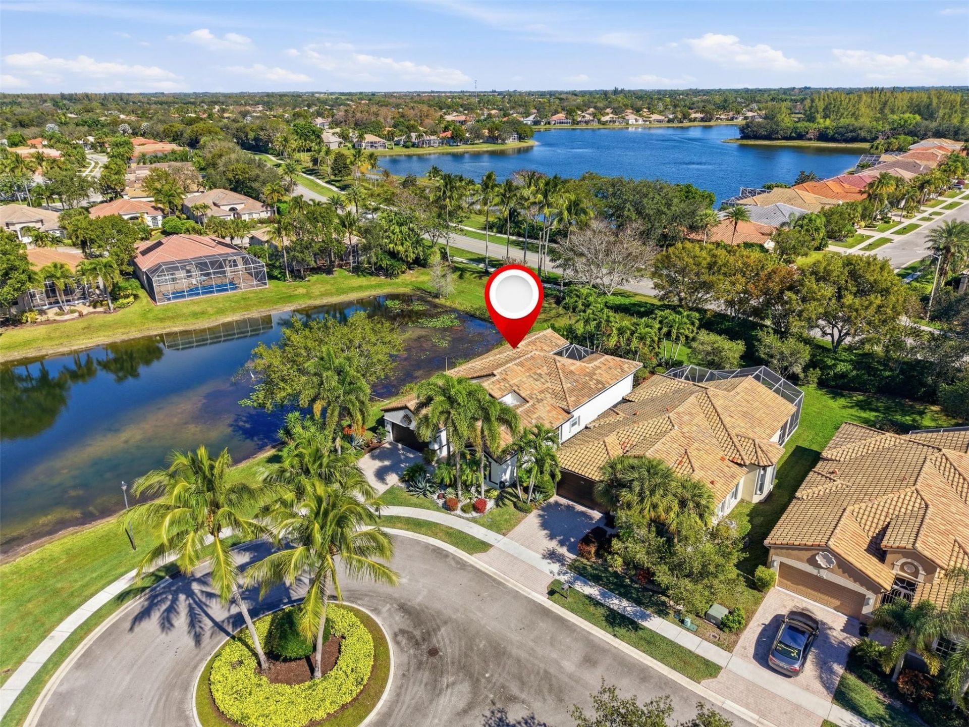 Welcome home to this beautifully maintained 3-bedroom, 2-bath single-family residence located in the prestigious gated 55+ community of Bellagio. Tucked away at the end of a quiet cul-de-sac, this home offers exceptional privacy with a desirable private lot and tranquil water views to the left of the property. The very open floor plan creates a bright, airy feel and is perfect for both everyday living and entertaining. Recent improvements include custom closets throughout, wallpaper removal with fresh interior paint, and refreshed kitchen cabinetry with newly redone cabinet faces. Enjoy peaceful surroundings, thoughtful updates, and the relaxed, resort-style lifestyle Bellagio is known for, all in a prime, low-traffic location. Ideal for year-round living or seasonal enjoyment. A must see.