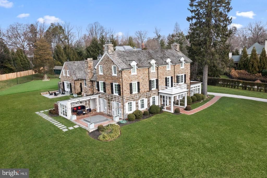 This Federal style fieldstone residence known locally as The Spring House stands proudly atop 2.1 manicured hilltop acres in Radnor School District. With its elevated presence, classic fencing, and visually prominent corner setting, the home makes a striking first impression while offering privacy and distinction. Spanning approximately 5,500 square feet across three gracious levels, the main residence features five bedrooms and five and one half baths. In addition, enjoy a separate one bedroom, one full bath guest cottage. A detached garage is made up of two bays, a climate controlled peloton room/gym and an extensive weight room. The turf field with stadium lighting, putting green, in ground pool, separate hot tub, and generous recreation areas are designed for both intimate gatherings and large scale entertaining creating a truly special estate lifestyle. Steeped in history yet thoughtfully modernized, the home blends original architectural character with contemporary refinement. Reclaimed hardwood floors, exposed beams, and dramatic stone walls preserve its heritage, while extensive renovations, including a newly renovated kitchen and guest cottage, ensure effortless modern living. The gourmet kitchen serves as the heart of the home, centered around a 10 foot island with farmhouse sink and striking 4 inch quartzite countertops. A charming built in window seat provides additional kitchen table seating and overlooks a picturesque courtyard framed by a stone wall and architectural ivy lattice. The open Butler’s pantry with beverage refrigerator adds both function and elegance. Premium appliances include a BlueStar French Blue double oven with commercial grade six burner and griddle cooktop and custom hood, oversized Miele refrigerator and freezer, built-in Miele coffee system, Wolf warming drawer and microwave, and two Bosch dishwashers. White cabinetry with elegant silver hardware, built in pantry shelving, reclaimed hardwood floors, and classic subway tile complete the timeless design. The family room is warm and inviting with reclaimed hardwood floors, a beamed ceiling, and a striking stone wall. Built-in bookshelves and cabinetry provide both charm and storage, while a gas fireplace, the first of three in the home, anchors the space. Three French doors open to the side covered patio with hot tub and courtyard creating seamless indoor outdoor flow. The living room features a second gas fireplace with a white brick surround, designer wallpaper, and impressive deep windowsills. Two French doors open to the patio, while double doors lead directly to the foyer. The dining room showcases designer wallpaper and an 18 inch deep windowsill. Two sets of glass doors lead to the sunroom, enhancing the home’s natural light and flow for entertaining. The sunroom is a light filled retreat with three walls of windows and brick flooring. A suspended sofa adds a distinctive architectural focal point and relaxed elegance. Upstairs the bright primary suite is a private retreat featuring dual baths and dual walk in closets designed by California Closets. Two bedrooms, one full bath with a steam shower and the laundry room complete the second floor. The third floor oasis has the fourth bedroom with an en suite full bath, the fifth bedroom, the fifth full bathroom and a large storage closet. Located in the highly sought after Radnor School District and close to most private schools, the lifestyle is equally exceptional. Enjoy walking access to the Radnor Trail, downtown Wayne’s shops, restaurants, train station, and the spectacular gardens of Chanticleer. Major commuter routes provide convenient access to Center City Philadelphia and beyond. A rare opportunity to own a landmark Main Line estate where enduring history, architectural beauty, and modern luxury converge.