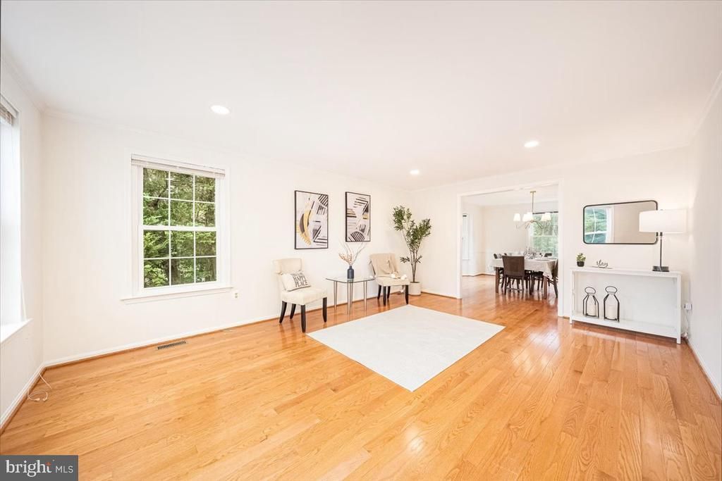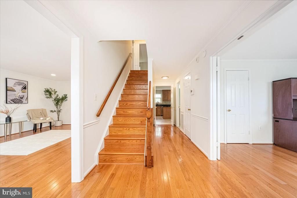 Beautifully maintained classic brick center-hall Colonial in the highly sought-after Derwood Station community, offering the largest floorplan in the neighborhood with approximately 3,684 square feet of interior space. From the moment you arrive, you’ll be impressed by the expanded driveway with parking for 4+ cars, the elegant flagstone walkway and front stoop, and the custom-crafted solid mahogany front door. Inside, rich wood flooring spans all three levels, offering a clean, carpet-free interior, while abundant natural light fills the home through large energy-efficient replacement windows, skylights, and upgraded glass patio doors. The classic center-hall Colonial layout offers a functional and elegant main level, featuring a home office or bedroom to the right of the foyer, a spacious living room to the left, flowing into an elegant dining room beyond, enhanced by a bay window. The updated eat-in kitchen showcases maple cabinetry, granite countertops, updated appliances, gas cooking, and a vented range hood. The breakfast area, also featuring a bay window, opens seamlessly to an expanded family room centered around a brick-surround wood-burning fireplace, creating a warm and inviting gathering space. A sliding glass door leads to a deck overlooking a peaceful, tree-lined backyard canopy—perfect for relaxing or entertaining. Upstairs features a spacious primary suite with a large walk-in closet, three additional well-sized bedrooms, a hall bathroom with dual vanities, and a generous linen closet. A convenient laundry chute connects the upper-level bedrooms directly to the main-level mudroom laundry for added everyday ease. The walk-out lower level is fully finished and ideal for entertaining or multi-generational living, offering a spacious recreation room with a wet bar/kitchenette, a full bathroom, a versatile bonus room (perfect for a guest room, gym, or media room), and a large utility/storage room. Additional highlights include: the entire home freshly painted (2026); an excellent groundwater management system professionally designed and installed by Gray Goose Farm (Gaithersburg); custom gutters with LeafGuard system, installed through Costco (2015); a brand-new architectural roof installed in October 2025 using Owens Corning Duration® AR shingles, offering enhanced durability, wind resistance, and algae protection; a professionally maintained high-efficiency Carrier HVAC system with humidifier (replaced in 2020); a 50-gallon gas water heater professionally installed in 2019 and WSSC-inspected; a professionally installed whole-house Flow-Tech inline water treatment system (2021); three solar-powered attic fans to help reduce attic heat; and additional insulation installed in the attic and garage roof for improved energy efficiency. Ideally located just minutes from Shady Grove Metro Station, Interstate 270, and Rockville Pike, this home offers exceptional convenience for commuting, shopping, and dining. Nature lovers will appreciate being less than a 30-minute walk to Lake Needwood via a walking trail with direct access from the side yard.