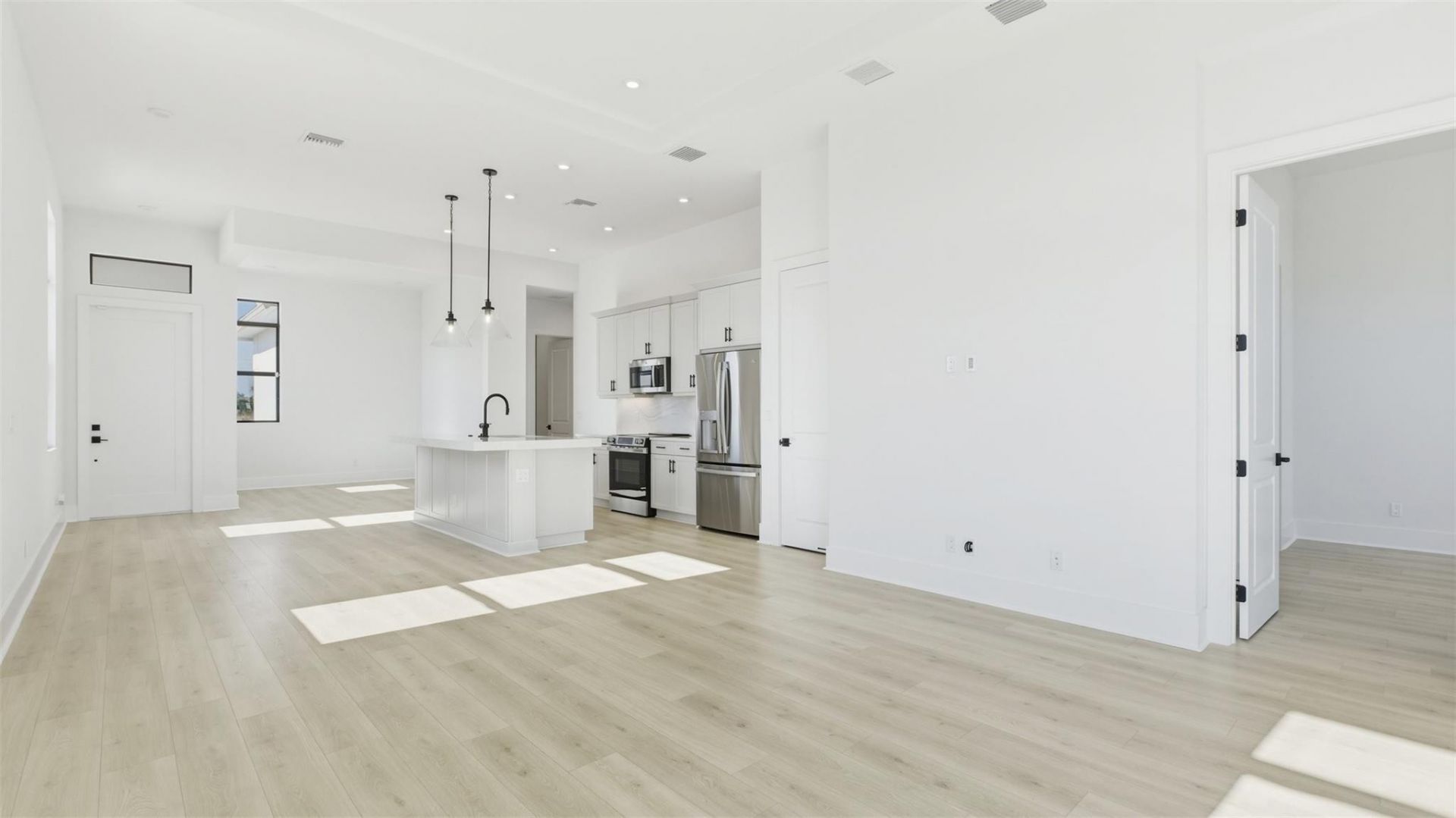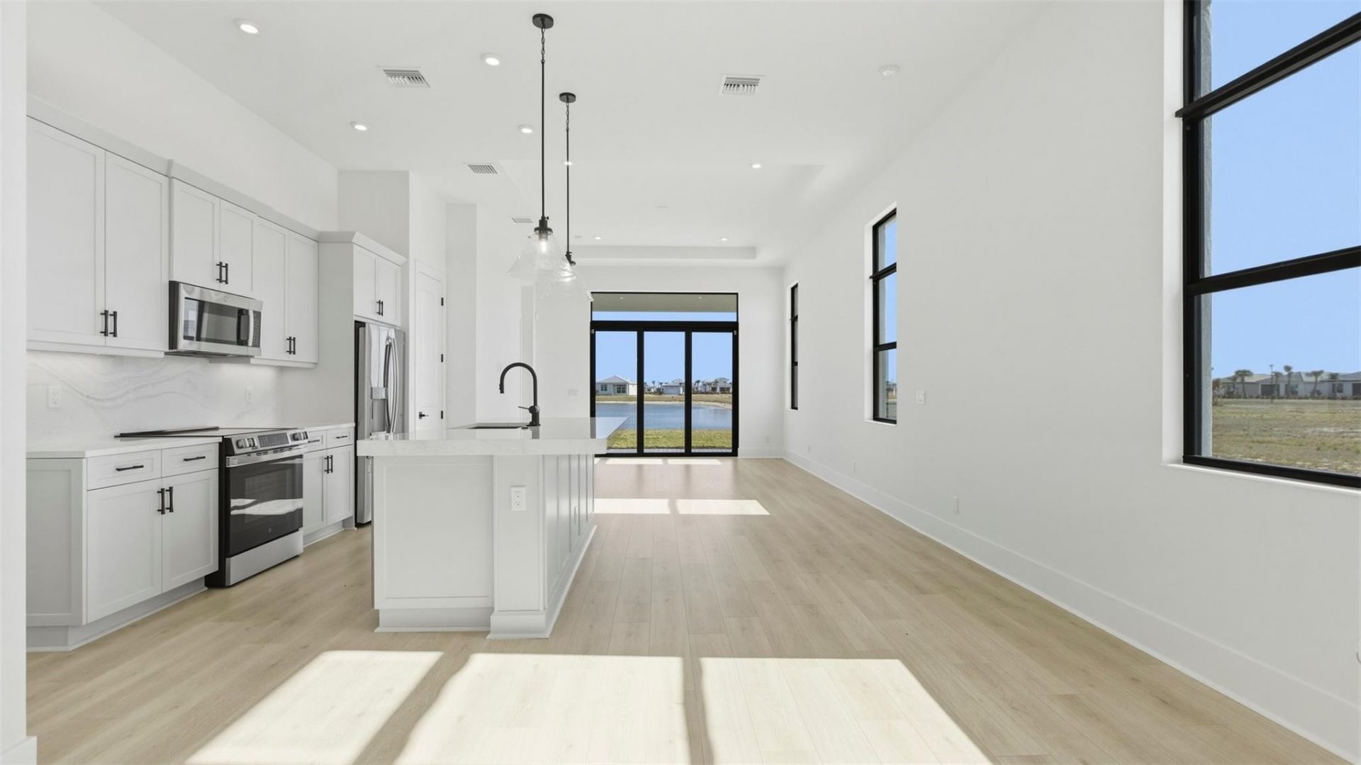 Move in Ready! Beautifully upgraded Allison 2 bed/2 bath with flex room is located in the manned gated community of PGA Verano. The secondary bathroom features a shower in lieu of a tub, offering a modern and convenient layout. Designer upgrades includes full height kitchen backsplash, a double trash pull out, and upper cabinetry in the laundry room. The owner's bathroom showcases a frameless matte black shower enclosure and an extended shower wall. Laminate wood flooring extends throughout the home, including both bedrooms and the flex room. Situated between Tradition Square and St. Lucie West, providing easy access to shopping, dining, and everyday conveniences while enjoying resort style amenities.