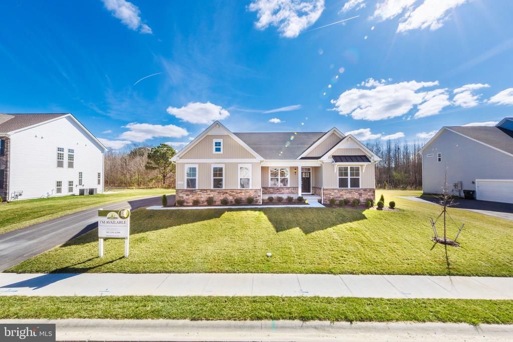Quick Delivery Move-in Ready! Welcome home! With its classic architectural exterior and flexible layout, this popular ranch design allows for effortless single-level living. The well-appointed gourmet kitchen features generous storage, upgraded 42” white cabinets with brushed nickel hardware, quartz countertops, stainless steel appliances including a double-wall oven, large kitchen island with quartz countertops, pendant light rough ins, and cabinets on both sides. The kitchen opens to a spacious Great Room with a fireplace, additional windows, an 8 ft. extension, and recessed lights. We have added a 2ft extension from the garage through to the owner’ suite. The private owner’s suite offers a tray ceiling with recessed lights, oversized walk-in closets, a luxury bathroom with walk-in shower and a free-standing tub. A split-bedroom layout offers two additional bedrooms on the other side of the house with a shared bathroom. We have also included a library for some additional private space or a home office. The included unfinished basement has 9ft ceilings, a rough-in for a future bathroom and a 6 ft areaway with sliding door. LVP flooring is included in the first-floor hall, powder room, drop zone area, laundry room, great room, kitchen, breakfast room, pantry, hall to bedrooms 2 & 3, hall to owner’s suite. Located in the Caesar Rodney School District. Sidewalks and streetlights, public water, public sewer, and natural gas. Close to shopping, restaurants, and easy access to highways. Some Pictures are virtually staged. Call about our Military appreciation incentive (Active/Retired Military only). Please contact on-site builder sales manager for details on incentives. On-site, unlicensed salespeople represent the seller only.