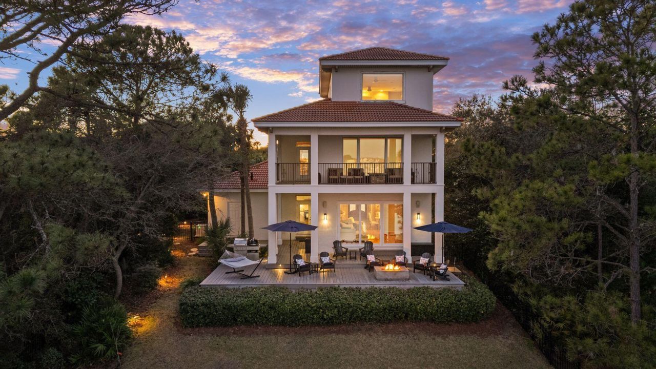 Set within the gated enclave of Destiny West, this exceptional three-story lakefront residence offers a rare blend of refined coastal elegance, thoughtful design, and captivating water views. Ideally suited as a primary residence, second home oasis, or tranquil vacation rental, the property delivers an elevated lifestyle just moments from the sugar-white beaches of Destin.Upon entry, floor-to-ceiling windows immediately frame serene lake views and flood the open-concept living, dining, and kitchen spaces with natural light. Rich hardwood flooring, custom millwork, and chandeliers establish a sophisticated yet inviting atmosphere throughout. The gourmet kitchen is beautifully appointed with granite countertops, custom cabinetry with ample storage, premium appliances including a gas stove top & wine fridge, and a butler's pantry perfect for both everyday living and entertaining. The adjacent living area, anchored by a gas fireplace and enhanced with motorized window treatments, opens seamlessly to the outdoor living spaces for airy evenings. A first-floor bedroom with ensuite bath and walk-in shower offers flexibility for guests or multigenerational living. The second-floor features the primary suite, a private retreat, featuring a spacious wrap-around balcony overlooking the lake, a fire pit for evening relaxation, a spa-inspired bathroom, and a generously sized walk-in closet with custom built-ins. The second guest suite with ensuite bath, walk-in closet, and private balcony is also located on the second-floor. The third level provides a versatile escape with a king bedroom, ensuite bath, and kitchenette ideal as a guest suite, home office, or recreational space. Outdoors, the lakefront terrace is a true showpiece, complete with a fire pit, grill, Green Egg smoker, and panoramic water views an ideal setting for sunset gatherings or hosting. Inquire for private pool plans and renderings, offering the opportunity to further enhance both lifestyle and rental performance. The home also features new, durable Polywood outdoor furnishings, a home generator system for added peace of mind, and a garage outfitted with built-ins plus an additional storage room.Destiny West residents enjoy lushly landscaped grounds, a large seasonally heated pool, hot tub, fitness center, tennis court, and an impressive clubhouse. Quarterly landscaping services are included, allowing for effortless ownership. The home is conveniently located near James Lee Park, the Crab Trap, and pedestrian- and golf-cart-friendly Scenic Highway 98, placing beaches, dining, shopping, and grocery stores just minutes away.This established vacation rental currently generates nearly $90K(2025) annually as-is with $35K already on the books for 2026, and the potential to increase income to an estimated $115K-$138K annually with the addition of a private pool. Meticulously maintained and ideally positioned, this lakefront offering represents a rare opportunity to own a premier property in one of Destin's most sought-after gated communities.