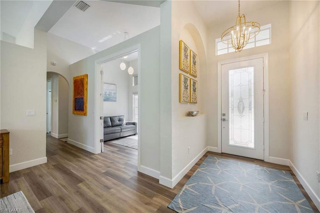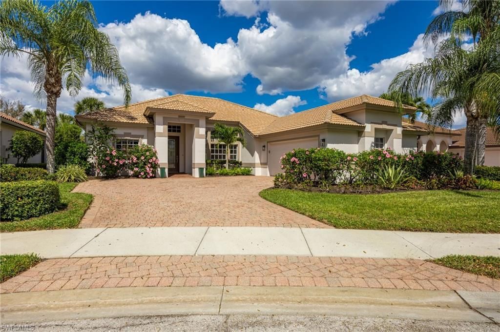 Mustang Island at Lely Resort — beautifully updated and designed with quality, style, and comfort in mind. This light-filled residence features soaring ceilings and an open, flowing floor plan ideal for both everyday living and entertaining. The gourmet kitchen is equipped with granite countertops, stainless steel appliances, and generous prep space, seamlessly connecting to the living area and extending out to the covered lanai. Step outside to your private backyard retreat featuring a sparkling pool surrounded by lush, tranquil landscaping — the perfect setting for morning coffee, relaxing afternoons, or evening swims under the Florida sky. The spacious primary suite offers a peaceful escape with a large walk-in closet recently designed by "California Closets", dual vanities, and a relaxing soaking tub. A bright front office with double French doors and garden views provides an ideal work-from-home space. Two guest bedrooms share a beautifully updated Jack-and-Jill bath. Additional highlights include a well-equipped laundry room with ample cabinetry and a spotless two plus-car garage with a finished epoxy floor. Recent updates provide both beauty and peace of mind, including fresh exterior paint on home and pool deck (2025), newly rescreened pool cage (2024), new landscape lighting that beautifully uplights the home, refreshed landscaping, reverse osmosis system and so much more. Enjoy the resort lifestyle Lely Resort is known for — with golf, dining, and amenities just moments away.