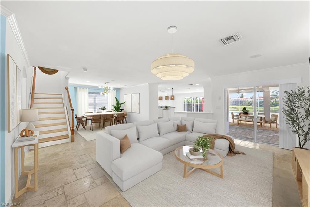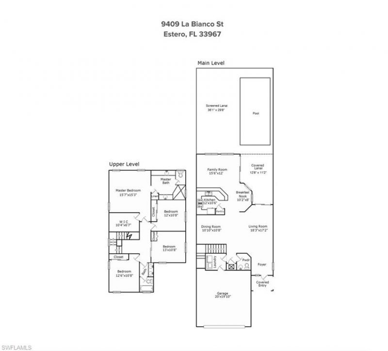 SELLER SAYS SELL! If you’ve been looking for a four-bedroom pool home in a prime Estero location WEST of I-75 and under $600K… look no further! This Toll Brothers Carmona model offers nearly 2,500 sq. ft. of living space, a custom pool, and a wide lake view with Sunny Southern Exposure in a low-density, natural gas, guard-gated community known for quality construction. All four bedrooms are located upstairs—including the spacious primary suite with step-in shower, two linen closets, and an oversized walk-in closet. A flexible fourth bedroom works perfectly as a game room, home office, or playroom. The main level features a welcoming living area, dedicated dining space, den/office, and an open kitchen with KitchenAid appliances and a breakfast bar overlooking the pool and lake. Outdoor living truly shines here with desirable southern exposure, an expansive screened lanai, and a generous covered area that seamlessly extends your living space—perfect for dining, lounging, and entertaining year-round. The spacious outdoor layout highlights the tranquil lake setting and makes the pool area feel like a private retreat. Additional peace of mind comes with the home’s location in Flood Zone X (low risk, flood insurance not required). The Reserve at Estero offers resort-style amenities including a clubhouse, fitness center, pool, tennis, pickleball, basketball, playground, and 24-hour security. A rare value for size, construction quality, outdoor living, and location. Seller says sell—priced aggressively with immediate value incentives